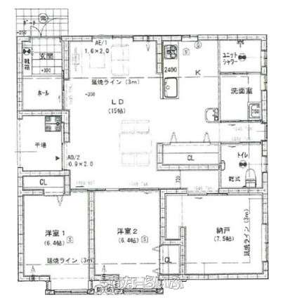 | 間取り | 3LDK ( 洋7.5 洋6.4 洋6.4 LDK21.8) | ||