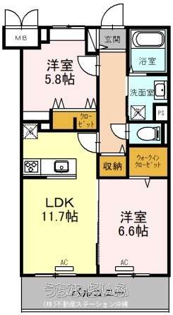| 間取り | 2LDK ( 洋6.6 洋5.8 LDK11.7) | ||