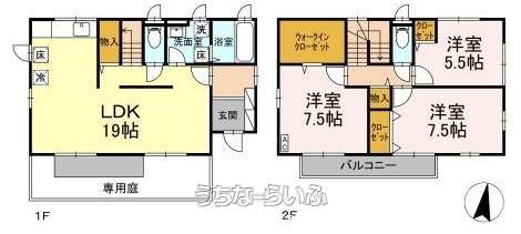 | 間取り | 3LDK ( 洋7.5 洋7.5 洋5.5 LDK19) | ||