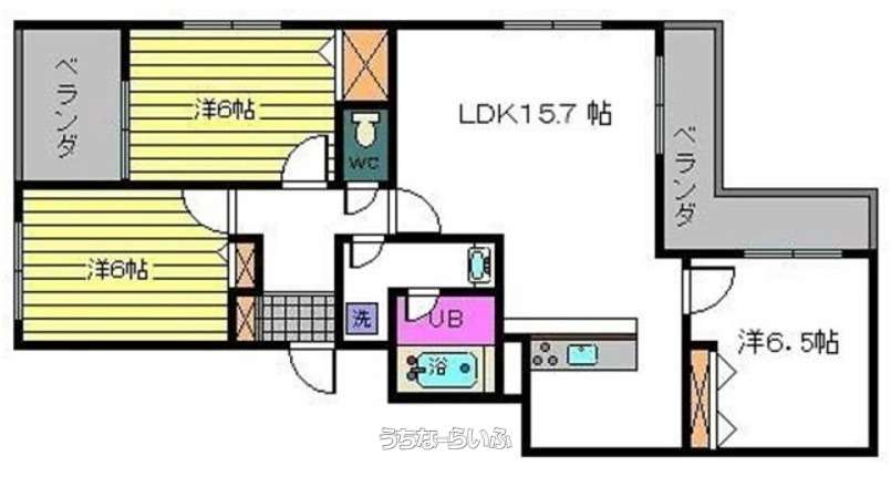 | 間取り | 3LDK ( 洋6.5 洋6 洋6 LDK15.7) | ||