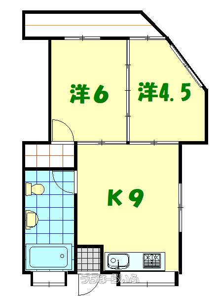 | 間取り | 2DK ( 洋6 洋4.5 DK9) | ||