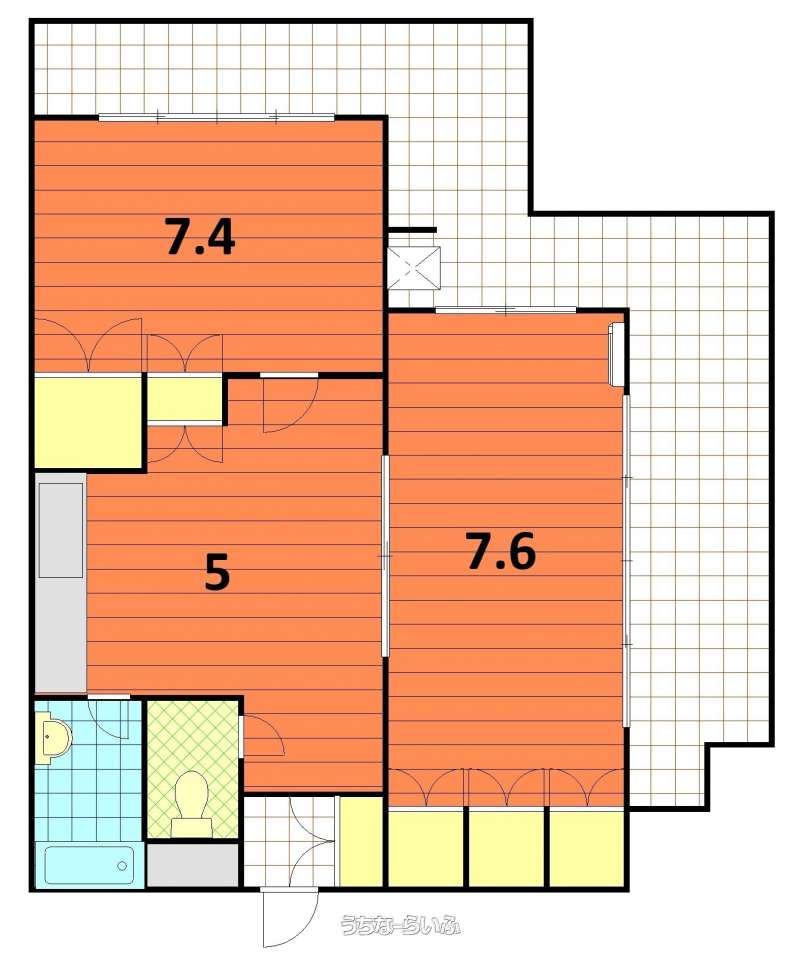 | 間取り | 2DK ( 洋7.4 洋7.6 DK5) | ||