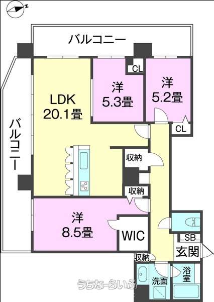 | 間取り | 3LDK ( 洋8.5 洋5.3 洋5.2 LDK20.1) | ||