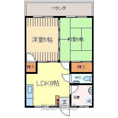 | 間取り | 2LDK ( 洋6 和6 LDK8 ※角部屋) | ||