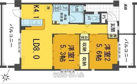 間取り | 2LDK ( 洋5.6 洋5.3 LDK12.1) | ||
