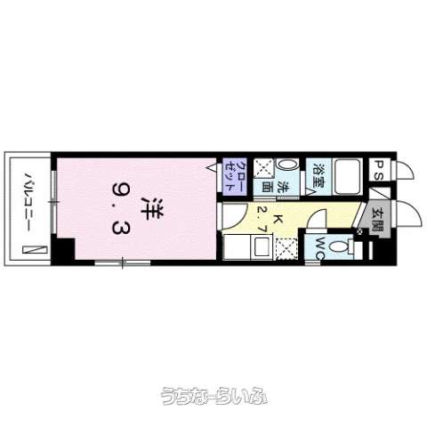 | 間取り | 1K ( 洋9.3 K2.7 ※(1K/30.75m2 方位 南東)) | ||