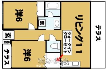 間取り | 2LDK ( 洋6 洋6 LDK11 ※オール洋間) | ||