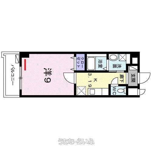 | 間取り | 1K ( 洋9 K3.19 ※(方位 南西)) | ||