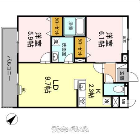 | 間取り | 2LDK ( 洋6.1 洋5.9 LDK12) | ||