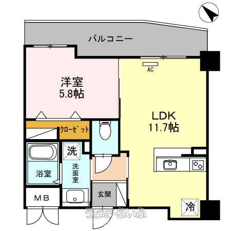 | 間取り | 1LDK ( 洋5.8 LDK11.7) | ||