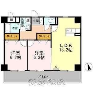| 間取り | 2LDK ( 洋6.3 洋6.2 LDK13.2) | ||