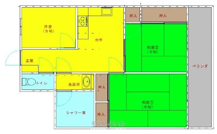 | 間取り | 3DK ( 洋5 和6 和5 DK6) | ||