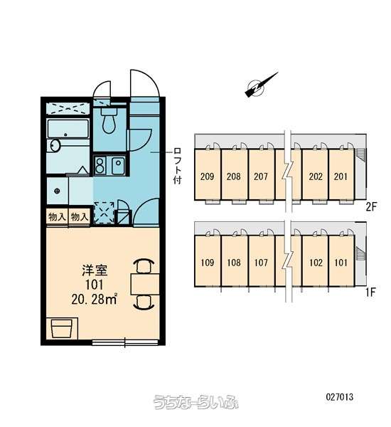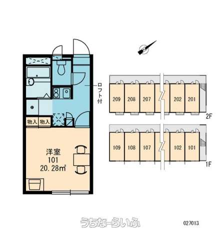 | 部屋番号 | 104号 | 所在階/階数 | 1階 (2階建) |