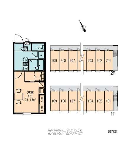 | 部屋番号 | 204号 | 所在階/階数 | 2階 (2階建) |
