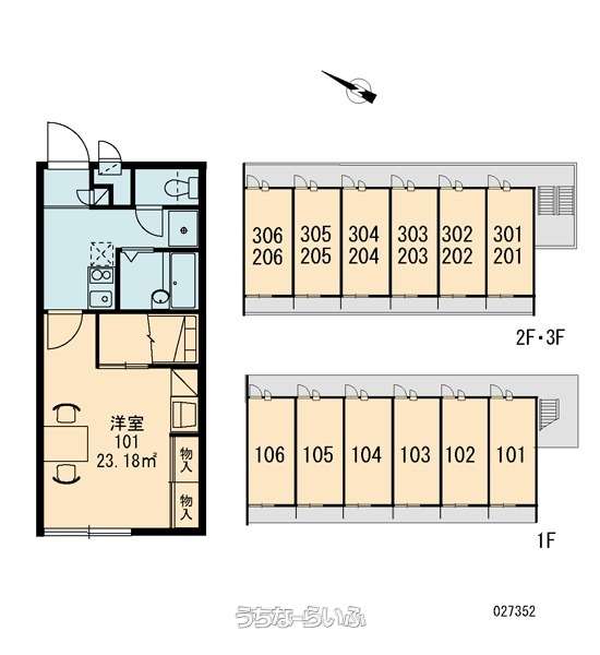 | 間取り | 1K ( 洋8 K2) | ||