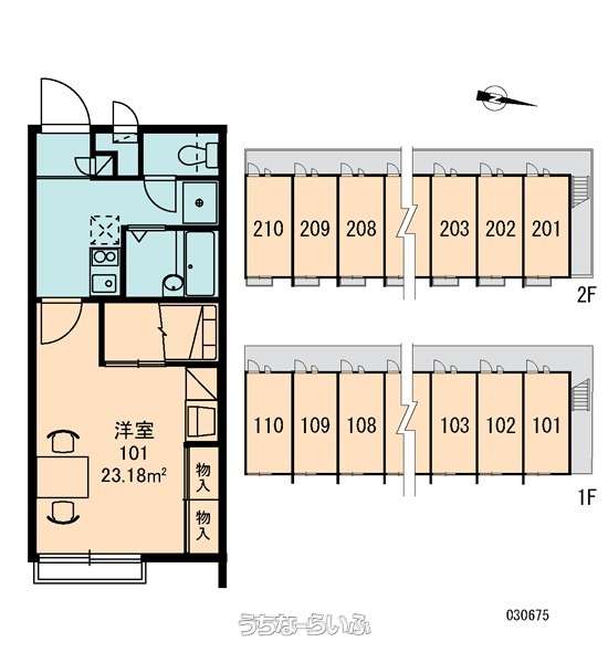 | 部屋番号 | 102号 | 所在階/階数 | 1階 (2階建) |