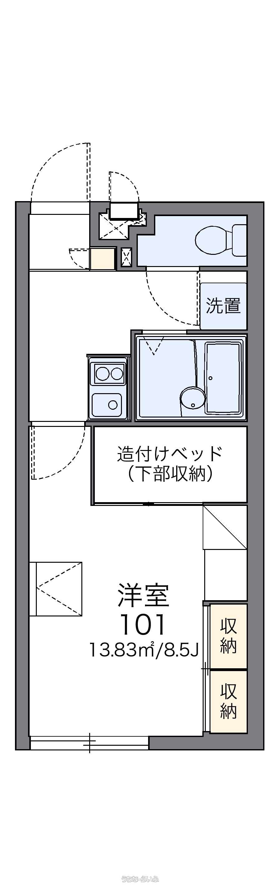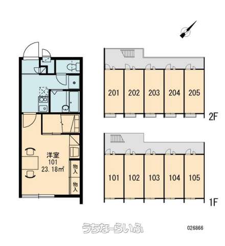 | 部屋番号 | 101号 | 所在階/階数 | 1階 (2階建) |
