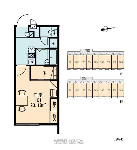 | 部屋番号 | 101号 | 所在階/階数 | 1階 (2階建) |