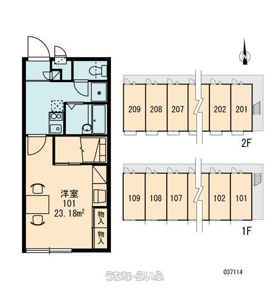 | 部屋番号 | 205号 | 所在階/階数 | 2階 (2階建) |