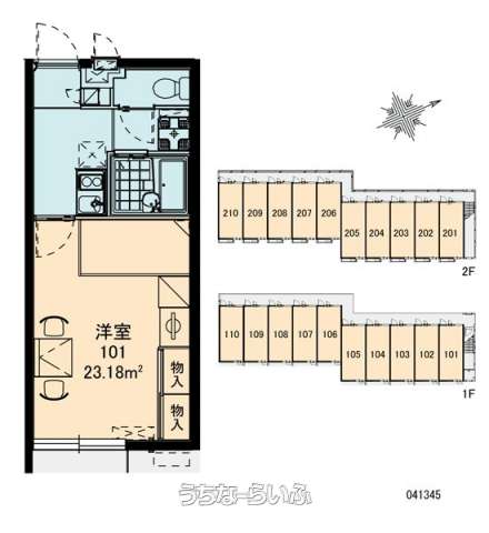 | 部屋番号 | 106号 | 所在階/階数 | 1階 (2階建) |