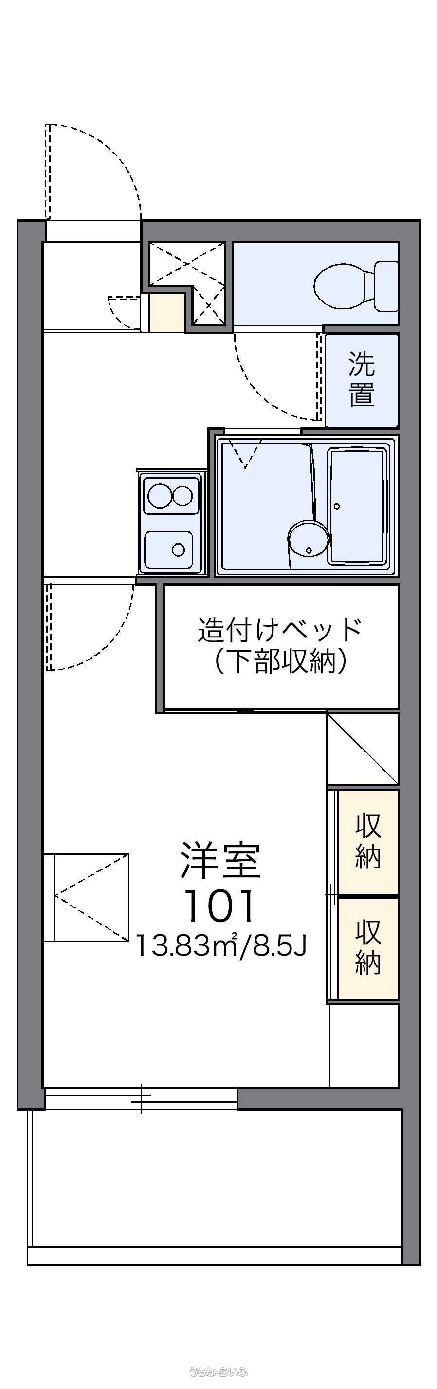 | 間取り | 1K ( 洋8 K2) | ||