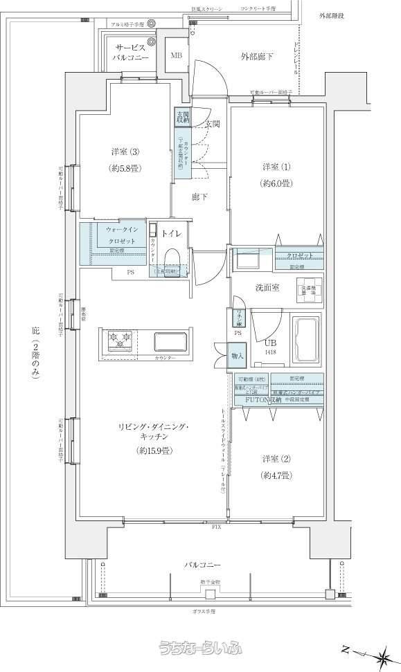 | 間取り | 3LDK ( 洋6 洋5.8 洋4.7 LDK15.9) | ||
