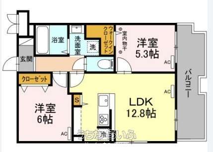 間取り | 2LDK ( 洋6 洋5.3 LDK12.8) | ||