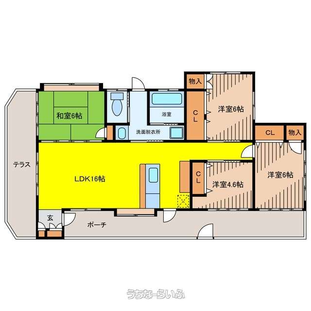 | 間取り | 4LDK ( 洋6 洋6 洋4.6 和6 LDK16) | ||