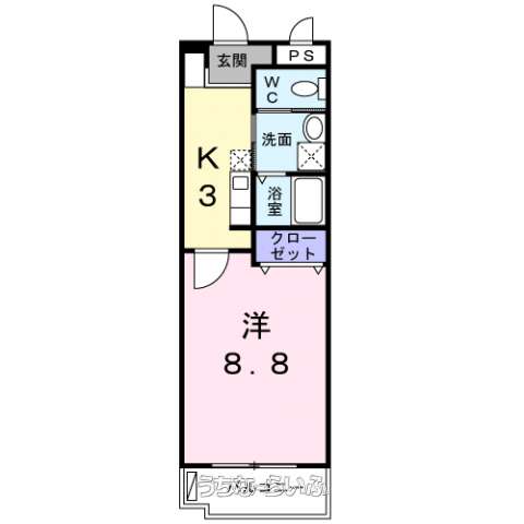 | 間取り | 1K ( 洋8.8 K3) | ||