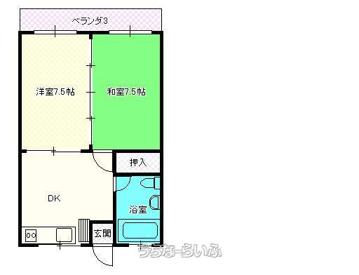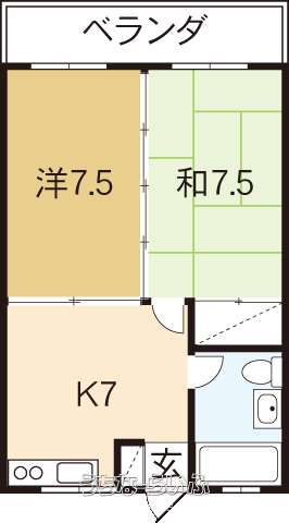 | 間取り | 2DK ( 洋7.5 和7.5 DK7) | ||