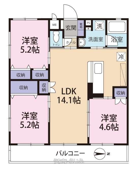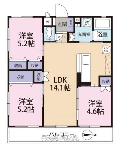 | 間取り | 3LDK ( 洋5.2 洋5.2 洋4.6 LDK14.1) | ||