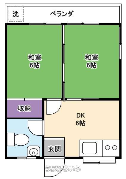 | 間取り | 2DK ( 和6 和6 DK6) | ||