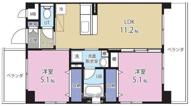 | 間取り | 2LDK ( 洋5.1 洋5.1 LDK11.2) | ||