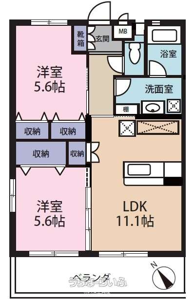 | 間取り | 2LDK ( 洋5.6 洋5.6 LDK11.1) | ||