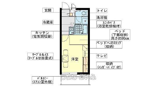 | 間取り | 1K ( 洋8 K2 ※家具家電付) | ||