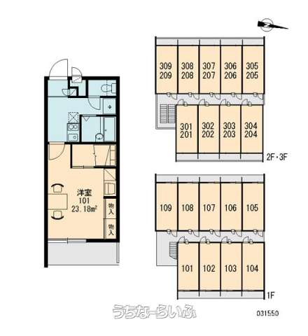 | 部屋番号 | 107号 | 所在階/階数 | 1階 (3階建) |