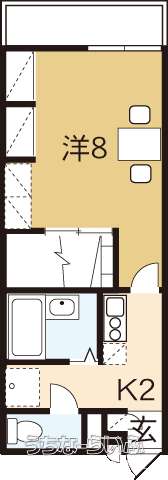 | 間取り | 1K ( 洋8 K2 ※家具・家電付き!2階以上はカーペットです) | ||