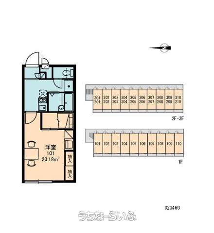 | 間取り | 1K ( 洋8 K2 ※家具家電付き 2階以上はカーペットです。) | ||