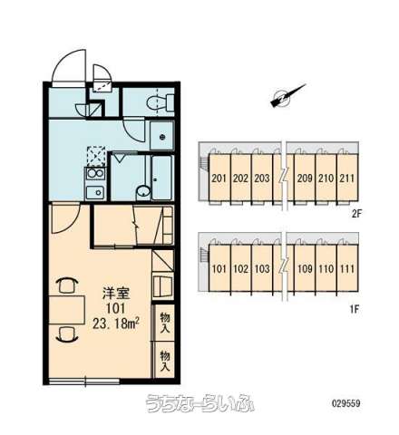 | 部屋番号 | 103号 | 所在階/階数 | 1階 (2階建) |