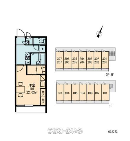 | 部屋番号 | 207号 | 所在階/階数 | 2階 (3階建) |