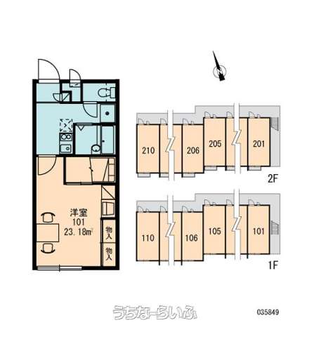 | 部屋番号 | 206号 | 所在階/階数 | 2階 (2階建) |