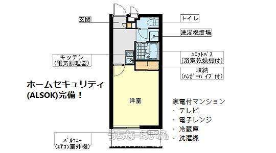| 間取り | 1K ( 洋8 K2 ※家具家電・ホームセキュリティ付き!) | ||
