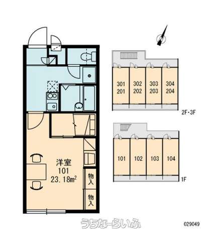 | 部屋番号 | 104号 | 所在階/階数 | 1階 (3階建) |