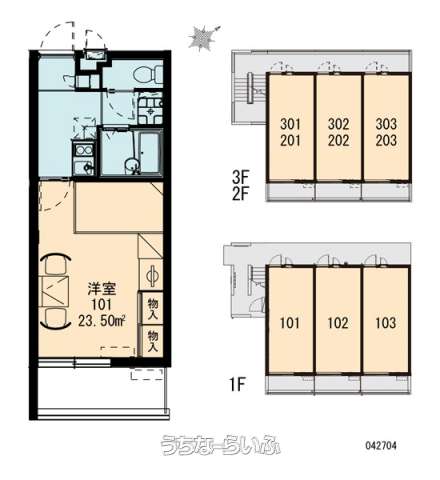 | 間取り | 1K ( 洋8 K2 ※1階はフローリング、2階以上はカーペット) | ||