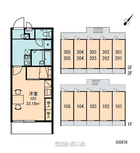 | 部屋番号 | 201号 | 所在階/階数 | 2階 (3階建) |
