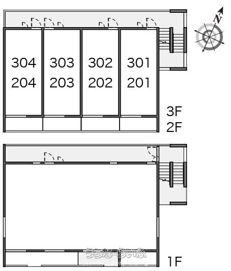 | 部屋番号 | 201号 | 所在階/階数 | 2階 (3階建) |