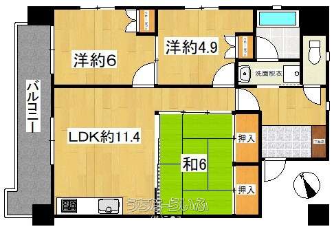 | 間取り | 3LDK ( 洋6 洋4.9 和6 LDK11.4 ※退去時ハウスクリーニング70,000円(税込)~ クーラー1台有(各8800円) 畳も表替え4,400円(1枚)鍵交換費用16,500) | ||