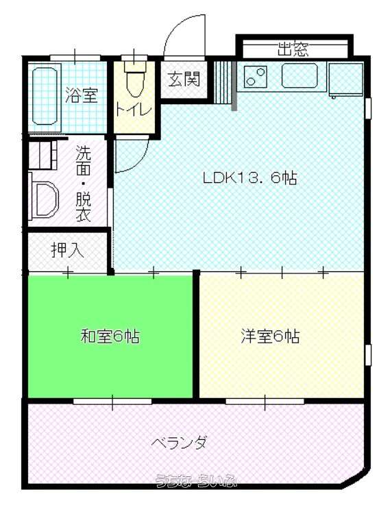 | 間取り | 2LDK ( 洋6 和6 LDK13.6) | ||