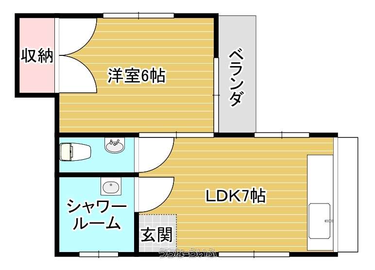 | 間取り | 1DK ( 洋6 DK7) | ||