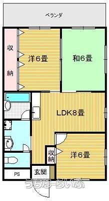 | 間取り | 3LDK ( 洋6 洋6 和6 LDK8 ※※写真と現状が少し異なりますが現状を優先します。) | ||